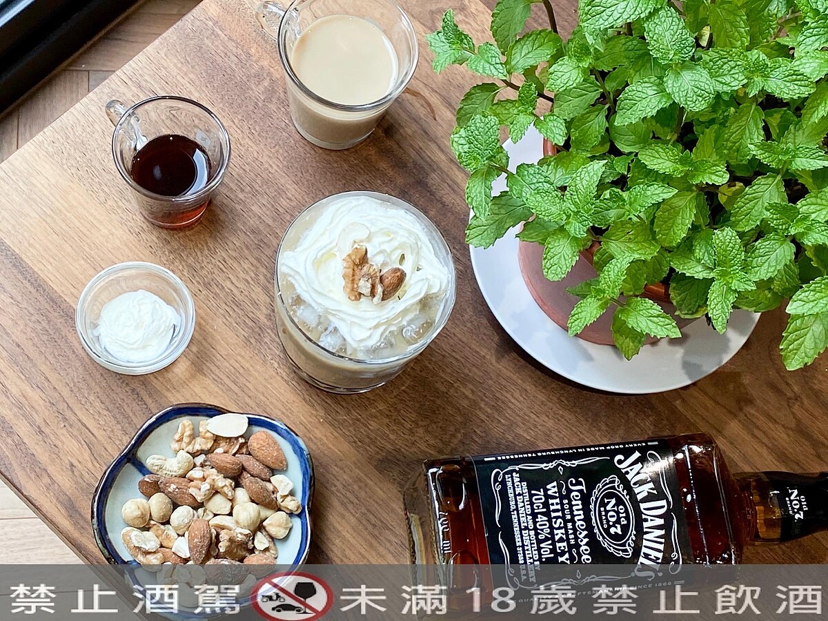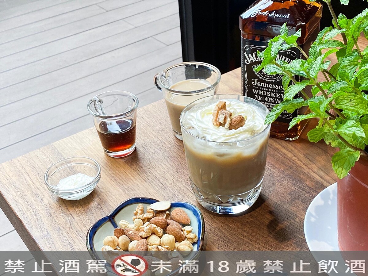 材料:1.5 oz Jack Daniel's Old NO.7、2 oz 深焙咖啡、黑糖奶茶加滿