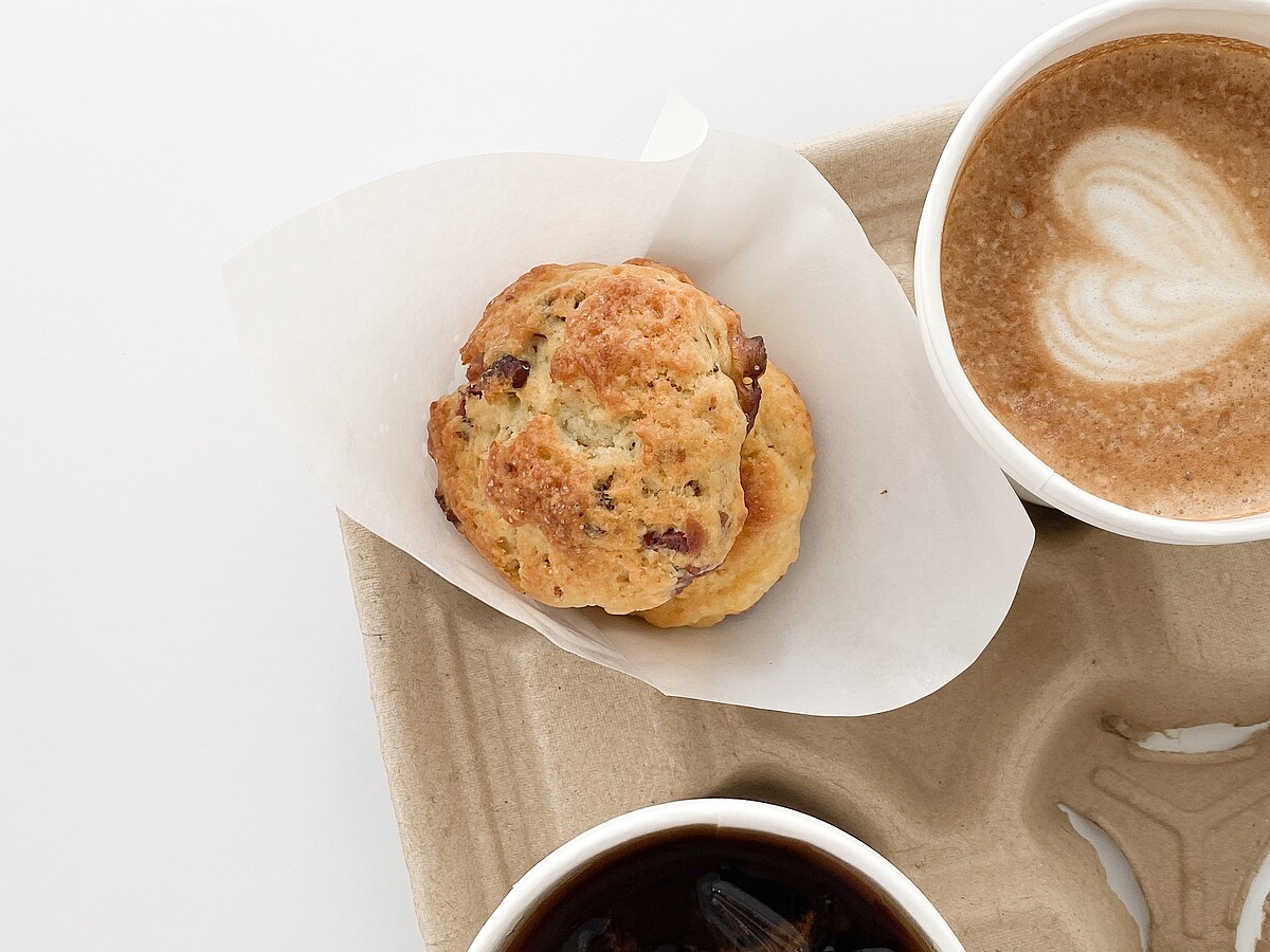 司康每日約4種不同口味,常態販售款式分別是香橙司康、伯爵茶司康、蔓越莓司康,另外會不定期推出像是蘋果、藍莓、楓糖、抹茶紅豆、OREO巧克力……等等,讓大家每次前來都有不同的驚喜口味!