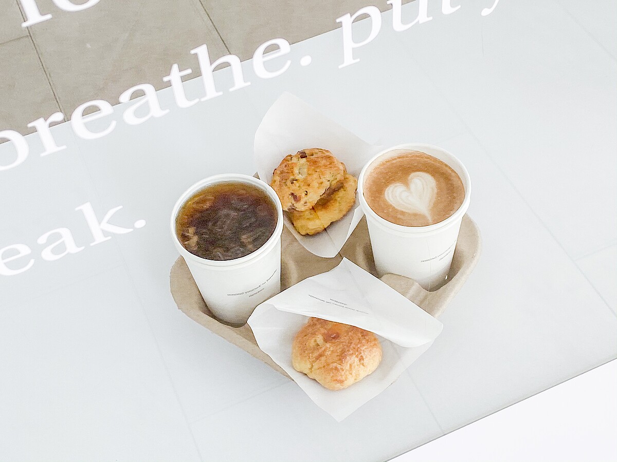 不只是外觀連內部裝潢,甚至是咖啡機全部都是純白色系,整體空間更顯明亮舒適!