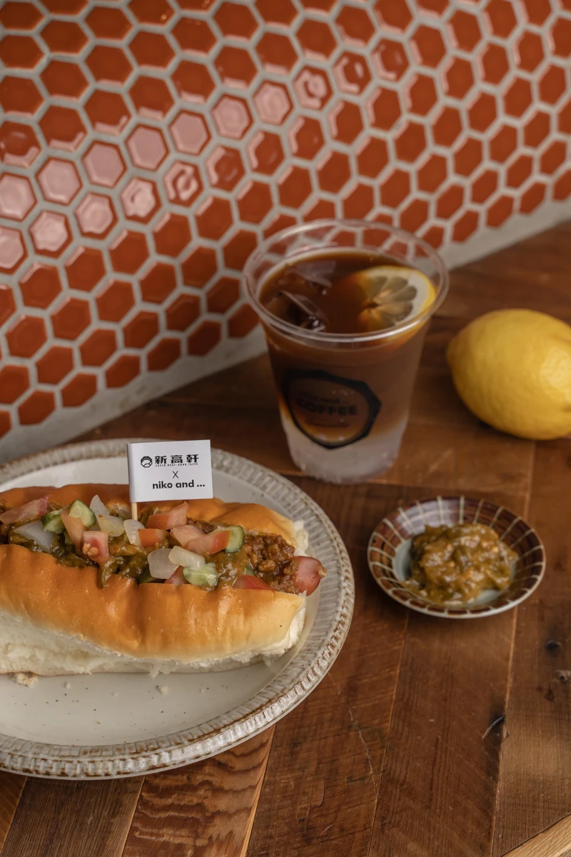 由新高軒著名的懷舊配方豬肉醬咖哩,配上niko and ... 的招牌溫熱鬆軟麵包夾入熱狗,在日式咖哩裡融入台式剝皮辣椒的靈魂。