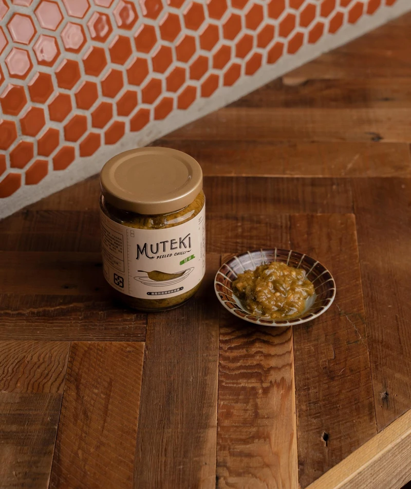 將豬肉醬咖哩及無敵剝皮辣椒味噌醬鋪在熱狗麵包上,再點綴醃製醬瓜、蕃茄和蕗蕎,充滿了美味澎湃的視覺感。一口咬下,吃得到咖哩的濃郁滋味,也能感受到多重層次所帶出的美味口感。