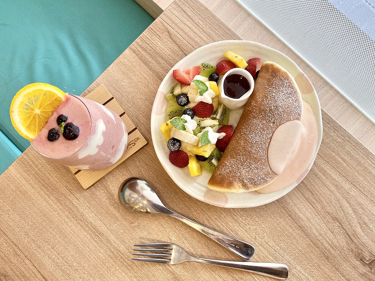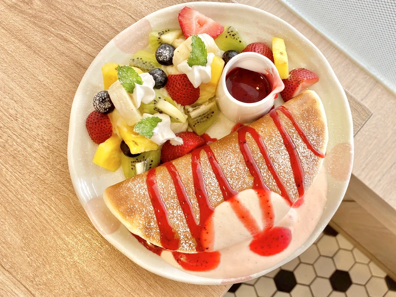 臺灣有著水果王國之稱,熱情的夏季水果,酸甜擁有特別香氣與果物本身帶有的鮮艷色彩,最能消暑解熱與補足心靈幸福感。除了哈密瓜鬆餅外,有選擇困難症的人也可以點選這款全新的鮮綜合水果雲的鬆餅,擁有五顏六色的綜合水果,視覺、美味一次滿足!