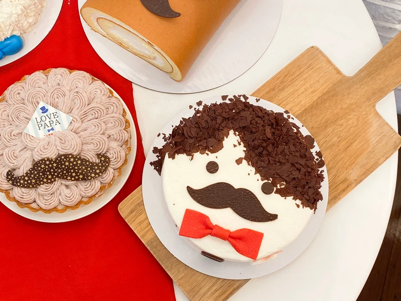 為了歡慶父親節推出多款爸爸造型蛋糕,在亞尼克親子DIY課程更特別規劃「阿爸の蛋糕 蛋糕親手做」,以瑞士翻糖捏塑,捏出老爸的鬍子、領帶,結合整顆在欉黃芒果與奶霜的精華,親手打造「翹鬍子帥老爹」!