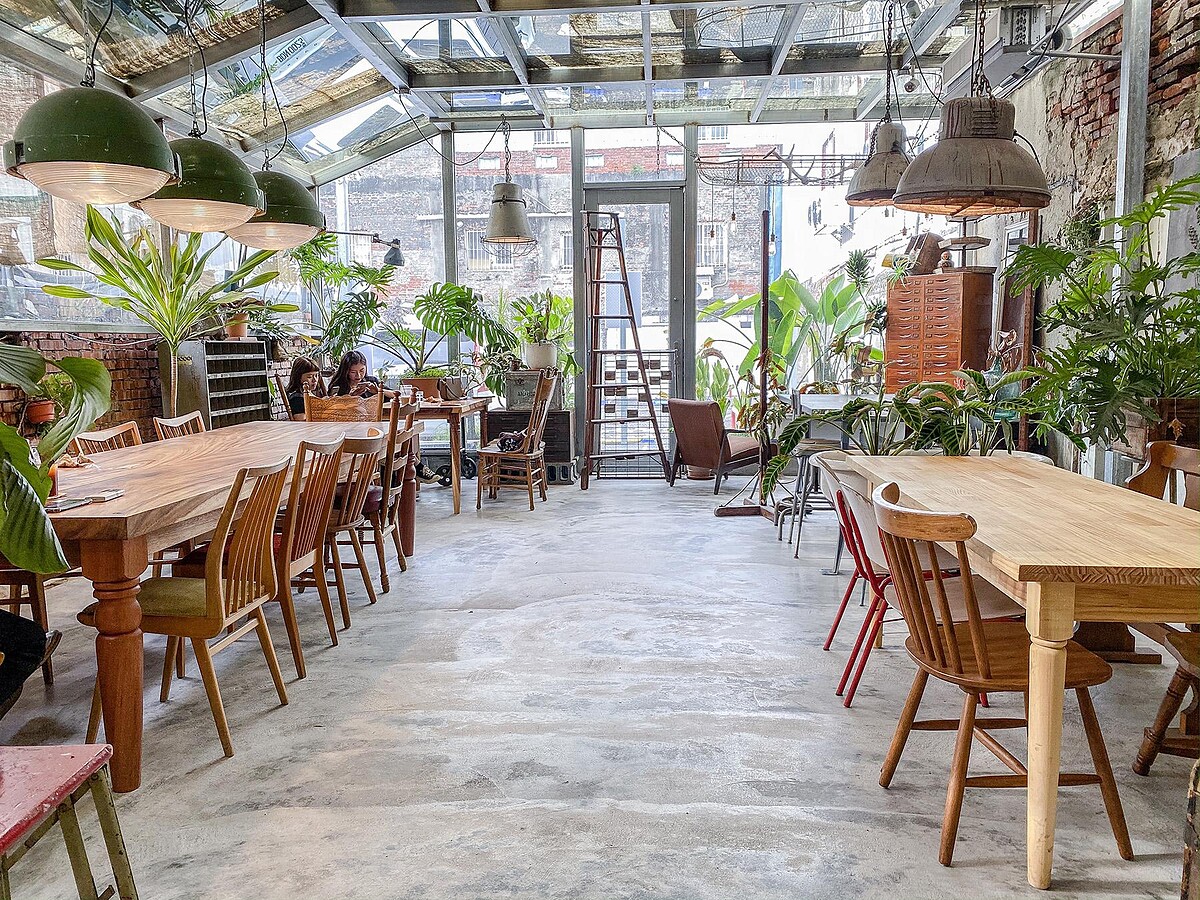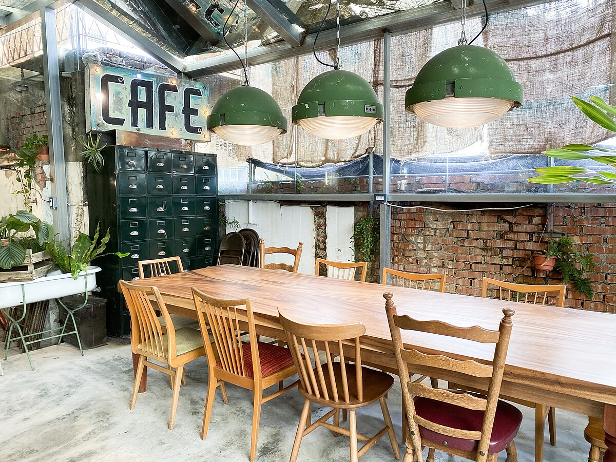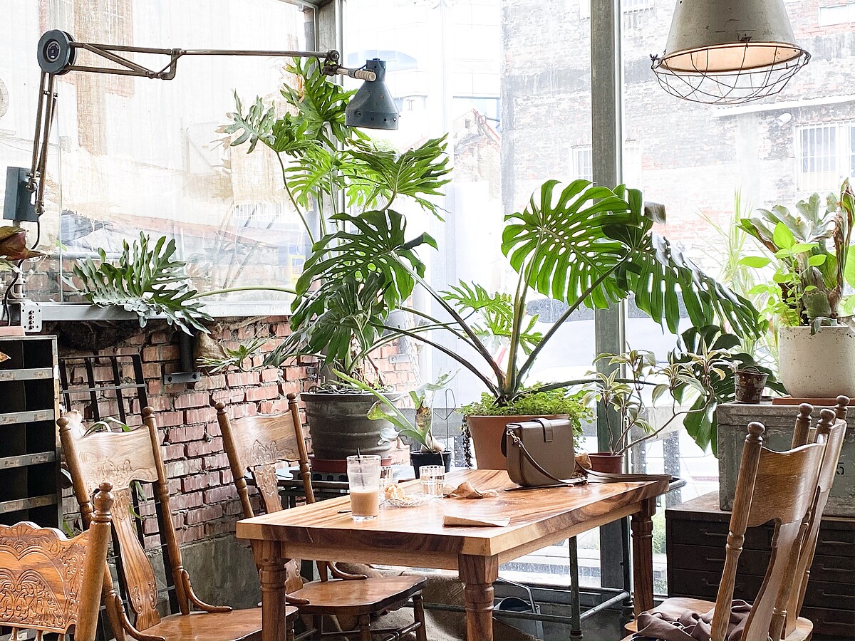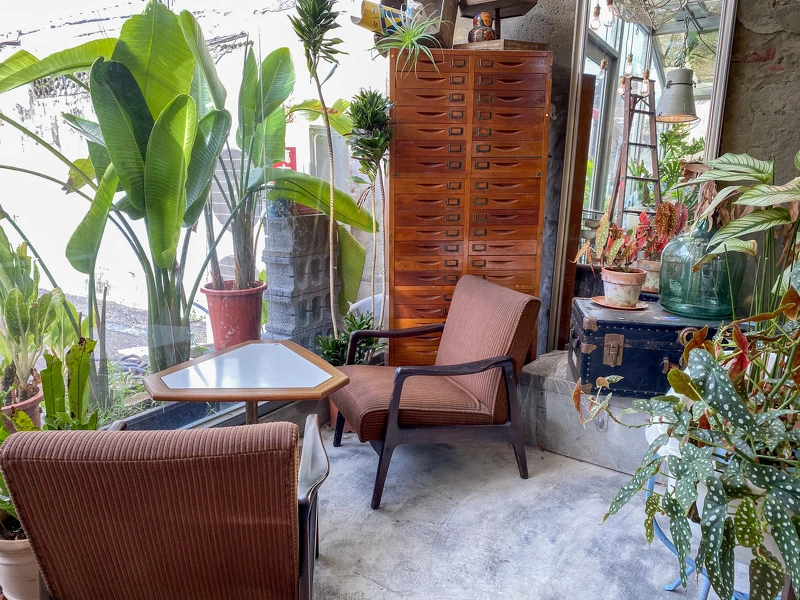 咖啡廳以老屋改建打造成玻璃屋的空間,店面更顯得寬敞明亮,最特別的是保留的斑駁的磚瓦牆面、地磚,再搭配綠意植栽、各式歐洲老件點綴下,每一個角落都獨樹一格,又能和諧地融入彼此,無論坐在哪裡都能拍出人生美照!