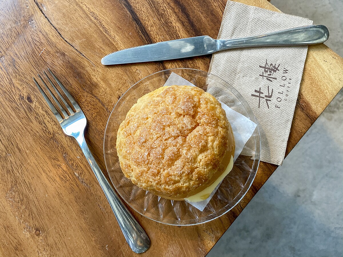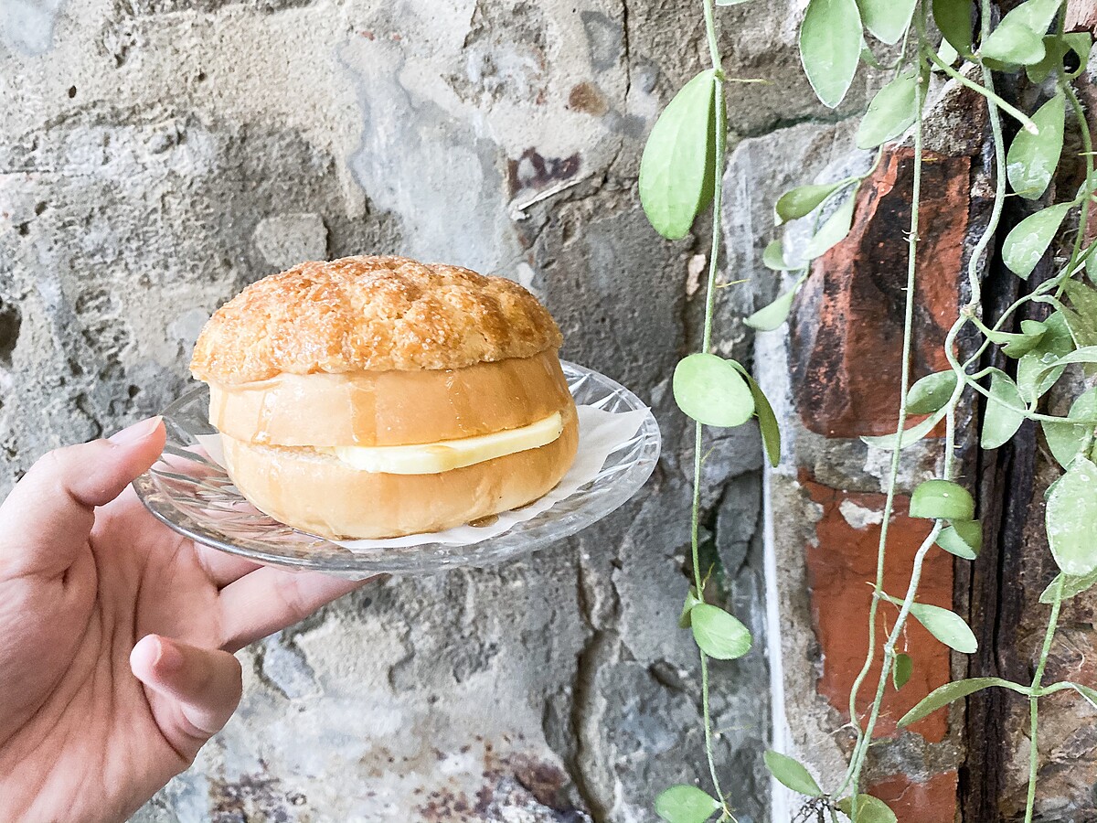 在外酥內軟的香酥波蘿麵包中,夾入奶油冷熱交融的口感超療癒!