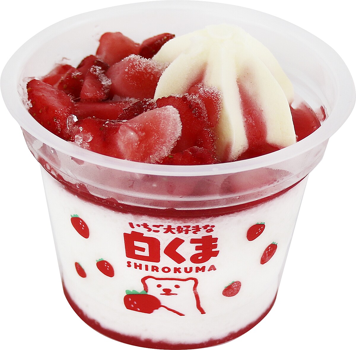 使用北海道煉乳製成蓬鬆的剉冰,加上新鮮冷凍草莓、及草莓醬,口感豐富清爽。