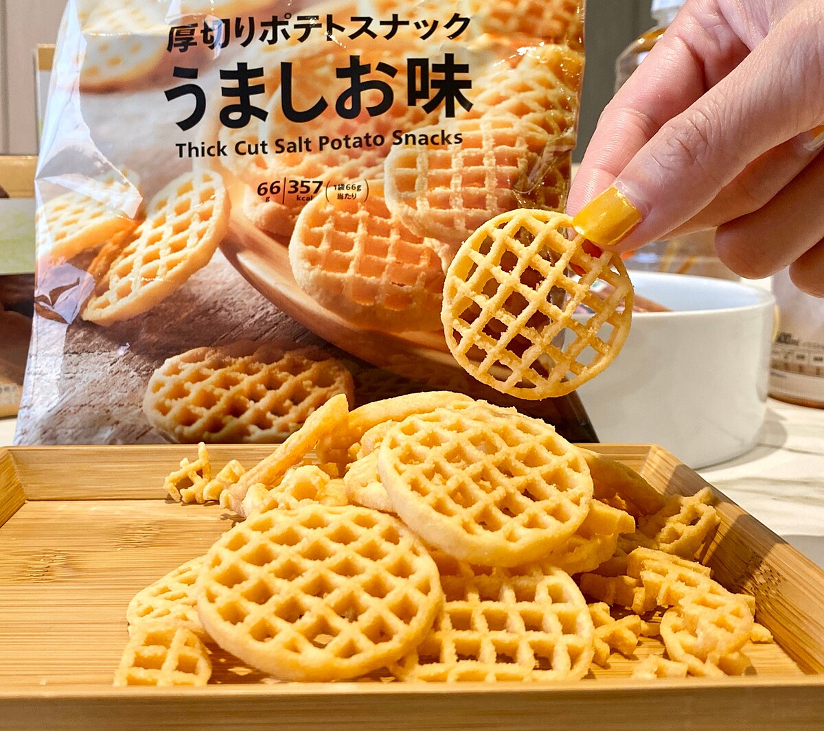 日本大廠東鳩代工,網狀餅體讓口感更酥脆,混和兩種鹽,吃得到馬鈴薯美味。