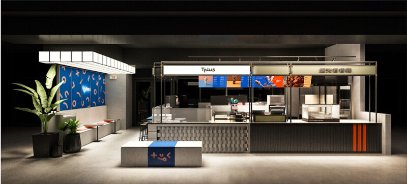 Tplus茶加Logo以幾何圖形拼組的方式,創造出專屬顏文字組合,以「+」、「T」、「P」表現喝手搖茶飲時的豐富表情。運用線條與符號,繽紛的藍粉搭配出各式包材與周邊商品。店面外觀則是如同茶葉萃取原葉的本質,透過多種不同媒材的搭配,包括櫃檯面交疊的水泥磚紋理以及帶有美式復古氛圍的燈箱招牌,打造出時髦的現代風格。