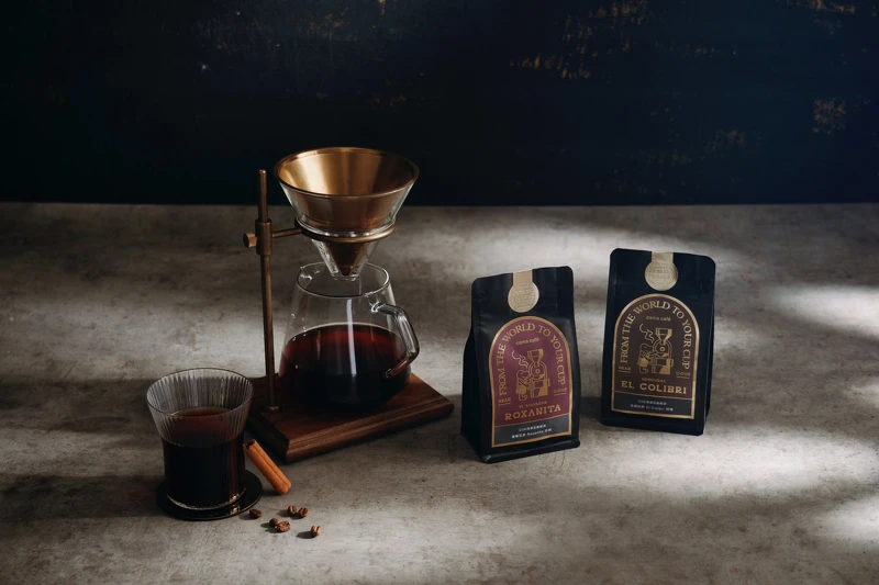 首月推出精品咖啡豆競賽 ( Cup of Excellence,C.O.E ) 獲獎莊園系列,以宏都拉斯El Colibri蜂鳥莊園日曬豆搭配薩爾瓦多Roxanita莊園水洗豆,前者蜂蜜、水果香與茶感四溢,後者松木、牛軋糖與核桃風味紮實,雙強組合一次品嚐。