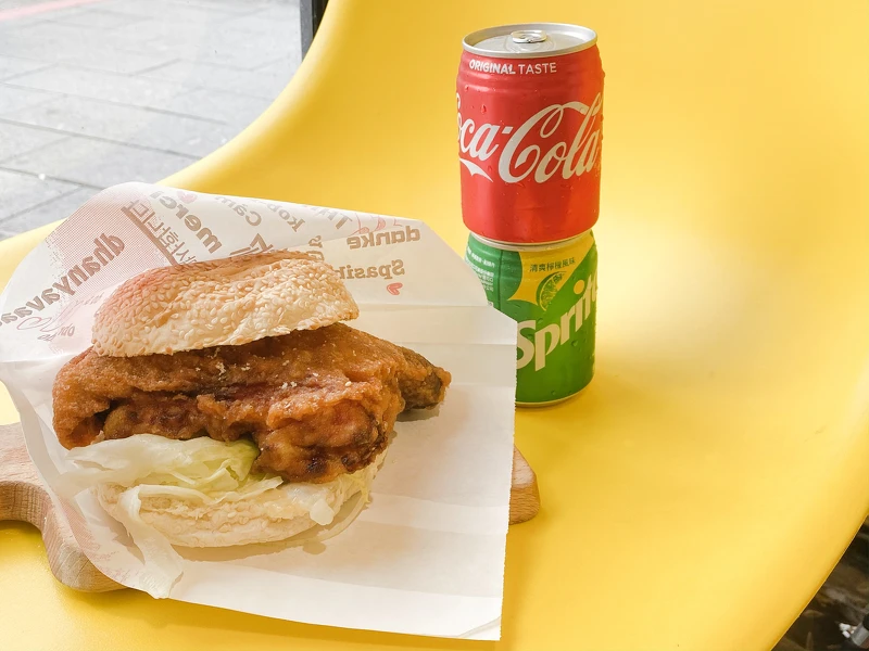 不只有販售彩色雞排、還有漢堡、咖哩飯…等,品項十分多元,還有內用座位可以讓三五好友可以坐著一起大啖雞排!