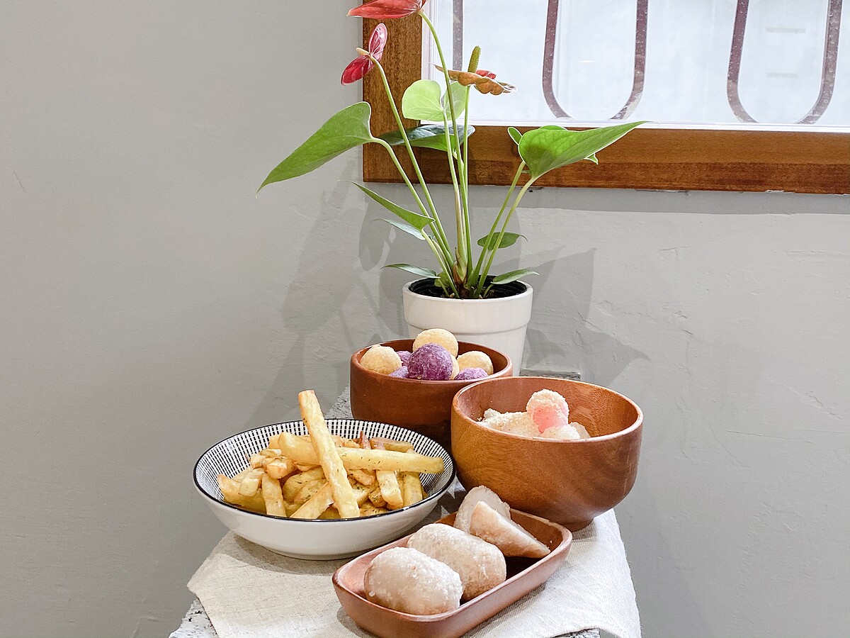 將台灣盛產的地瓜、芋頭、蘿蔔製作出一道道具有台灣風味的小點心!在早午餐店也能吃到傳統美食,像是菜頭粿、地瓜球、芋圓、炸湯圓,吃完主餐後再來一份炸物小點心就是最完美的結尾啦!
