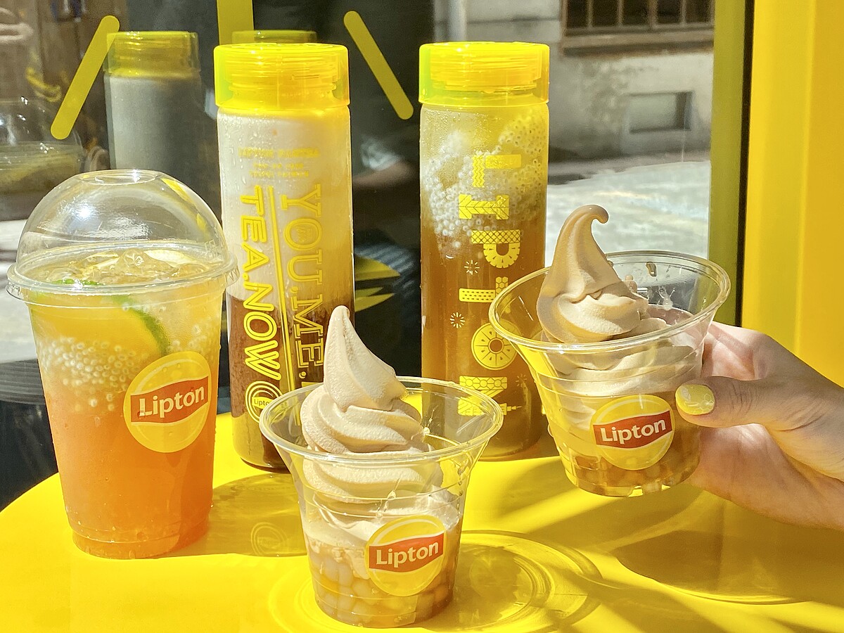 延襲品牌嶄新明亮的視覺設計風格,結合陽光立頓黃、木質感吧檯以及透亮玻璃屋,呈現屬於夏季的清新活力感。