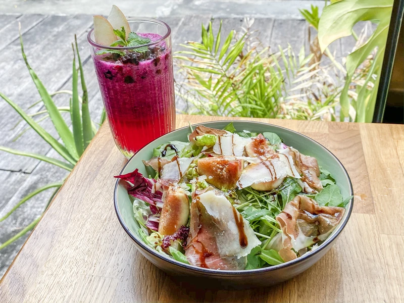 清爽系夏季的超人氣必點首選就是無花果生火腿沙拉,肥厚軟嫩的新鮮無花果,搭配西班牙生火腿的微鹹的鹹鮮味和咬勁,鹹香滋味讓人忍不住一口接一口!