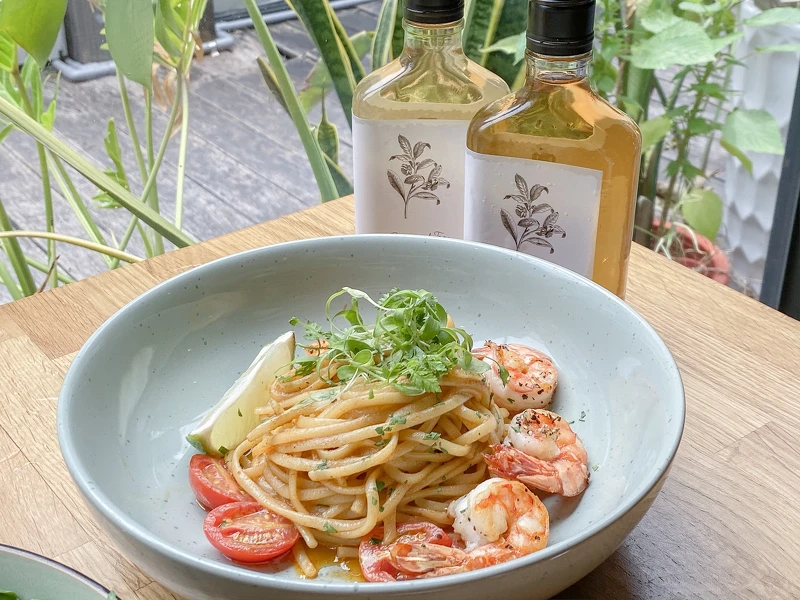 主廚自製的叻沙,先擠上檸檬增添香氣後,入口後濃郁香氣混合著椰奶香味,融合成恰到好處的辛辣,是一道會越吃越上癮的夏日麵食。