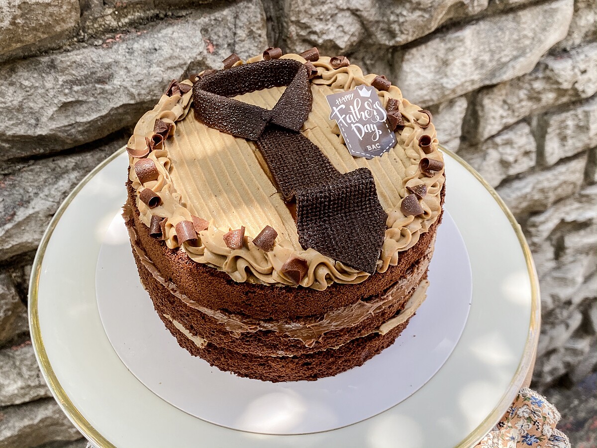 滿滿成熟穩重大人味的濃郁茶香的「可可公爵焙茶巧克力蛋糕」,外觀以爸爸的襯衫、領帶為巧思設計。