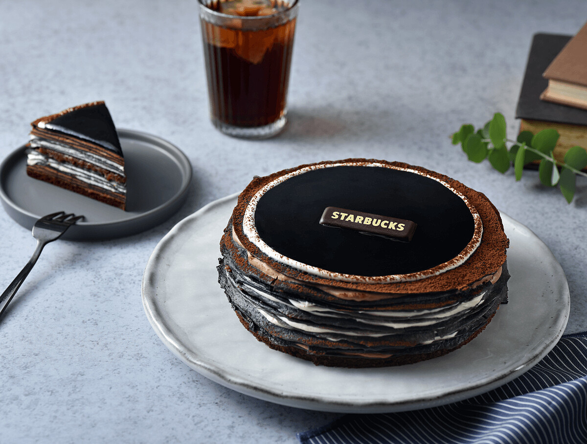 星巴克推出全新口味的千層薄餅,使用竹炭粉染出低調奢華風格的薄餅。內陷夾層則是法芙娜 70% 苦甜巧克力,貝禮詩奶酒慕斯,可可脆片再混和榛果巧克力醬的豐富口感。最後再以巧克力海綿蛋糕當底。整體層次分明,口口濃郁。