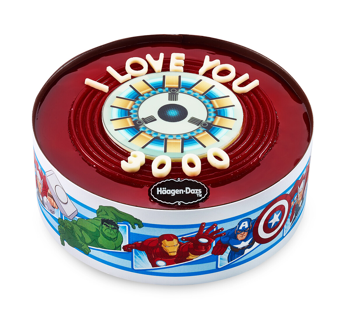蛋糕內餡以誘人的覆盆子雪酪與巧克力冰淇淋裹上覆盆子醬,濃醇巧克力圍邊,酸甜滋味帶出巧克力的苦甜,體驗莓果與可可交疊的豐富口感; 外型以鋼鐵人之心造型寫上「I Love You 3000」,如同奔波工作中的職場老爸,擁有鋼鐵人堅強帥氣的外表,是家中不可或缺的支柱,孩子心目中獨一無二的英雄老爸。