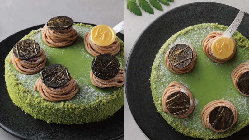 嚴選兩款小山園抹茶結合佛手柑與柚子的淡雅酸香,一片盎然綠意中的清爽滋味,與上層栗子泥中包覆著整顆糖漬栗子,細細堆砌而出的精緻風味!濃厚卻絕不甜膩!