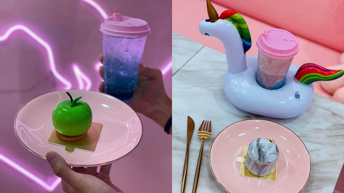 《Uniqorn Taiwan》就位在師大《2D Taiwan》漫畫風咖啡廳的斜對面,也是由馬來西亞與台灣團隊合力打造,在同一條巷弄內營造出兩種夢幻氛圍,從店門口到天花板、桌椅,滿滿的粉紅色調,就像走進了某個童話故事當中。
