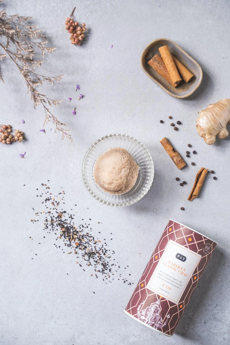 嚴選6款最受歡迎的P&T茶品,依據其風味特色,分別選搭台灣在地的當令水果或有機花草,使用天然椰糖,製作出低 GI、對身體無負擔的茶香冰淇淋。