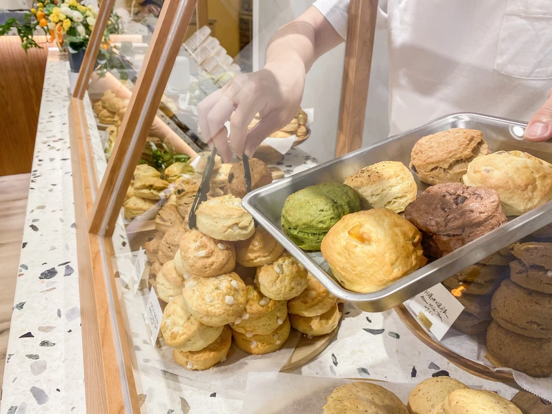 店內時常會推出特別口味的司康像是白蘭地杏桃司康、貝禮詩奶酒司康、黑糖麻糬司康…等等,每天販售約12至15種,幾乎每天有不同風味的好吃司康等著大家品嚐,無論甜鹹口味一次滿足!