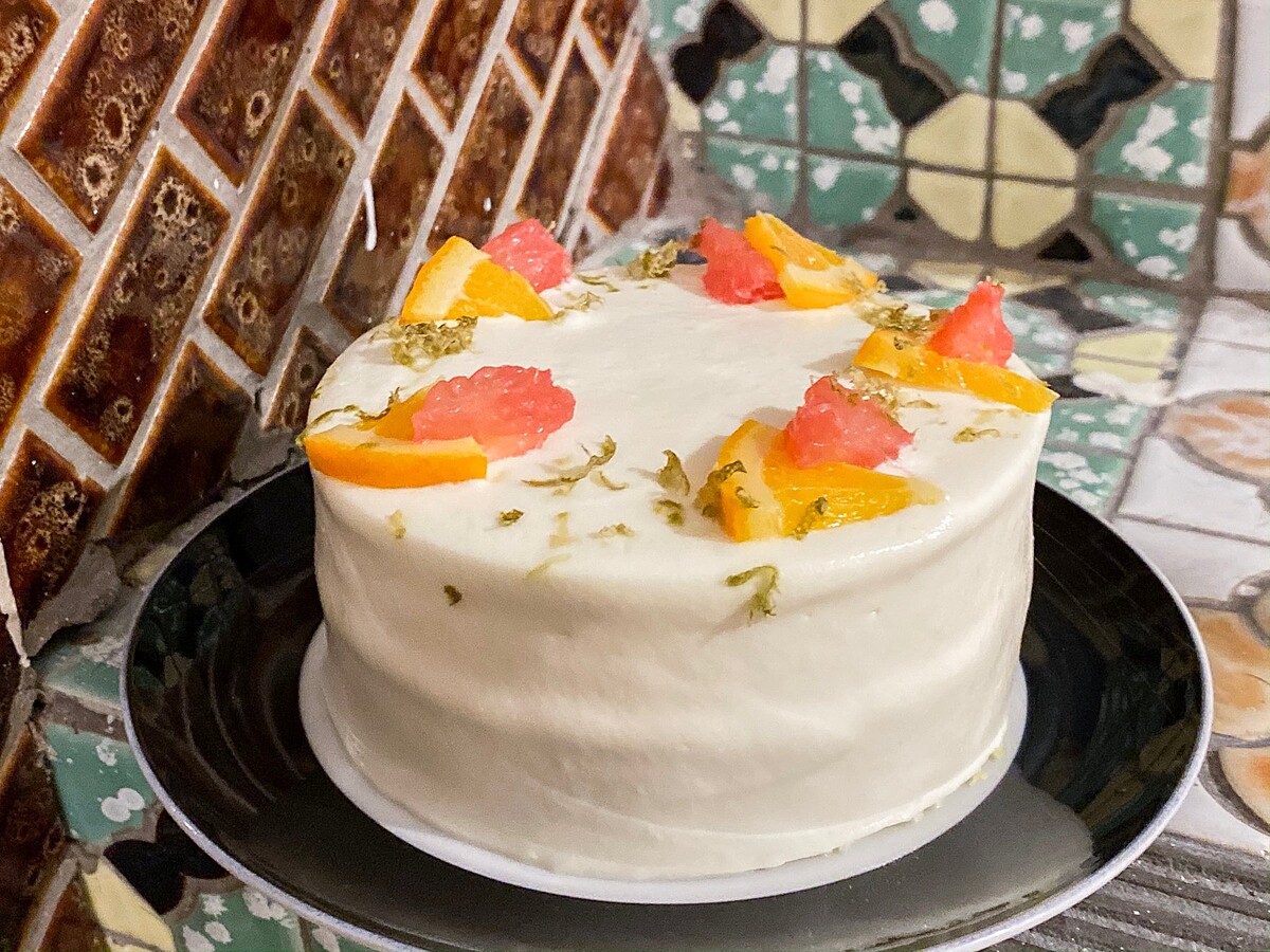 這款是研發時間最長的蛋糕,加入檸檬汁製成的戚風蛋糕體,接著再加入吉丁,中間的夾層則是葡萄柚,入口感受清爽的酸甜風味,最適合炎炎夏天享用!