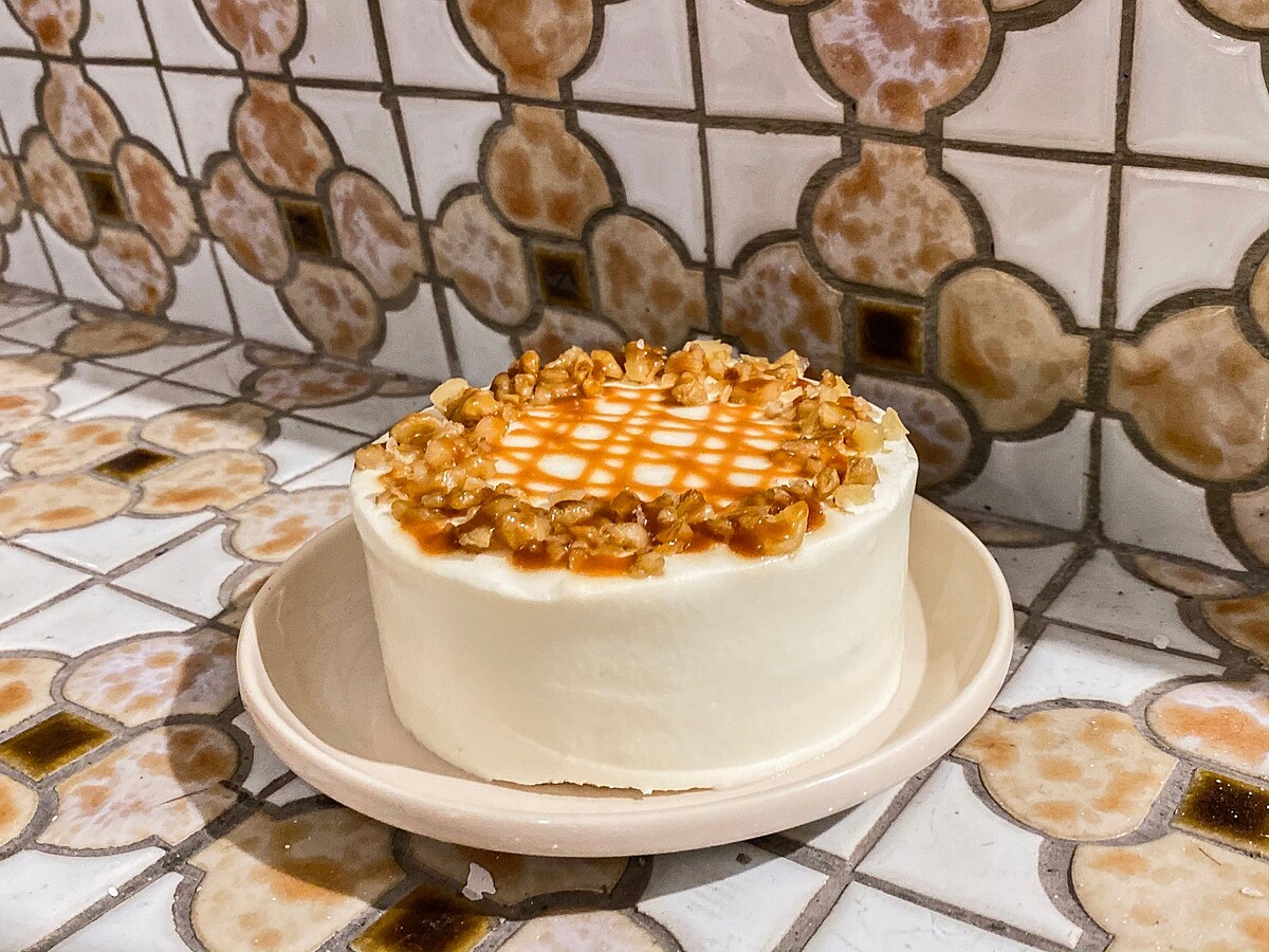 焦糖戚風蛋糕體加入碎核桃,最上面淋上誘人的太妃糖醬,再撒上海鹽,比起其他款這款口味偏甜,螞蟻人首選推薦!