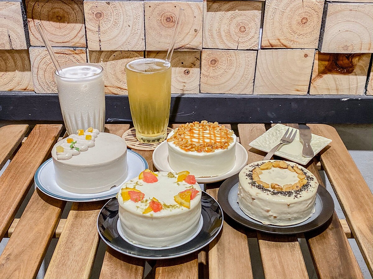 店內內用目前只販售4吋的戚風蛋糕,非常適合小家庭,或與閨蜜下午茶一起品嚐剛剛好,也接受訂製大尺吋的戚風蛋糕。目前共研發出20多種創意口味,每日隨機販售4至6種不同口味,每次前來都能夠品嚐不同風味!