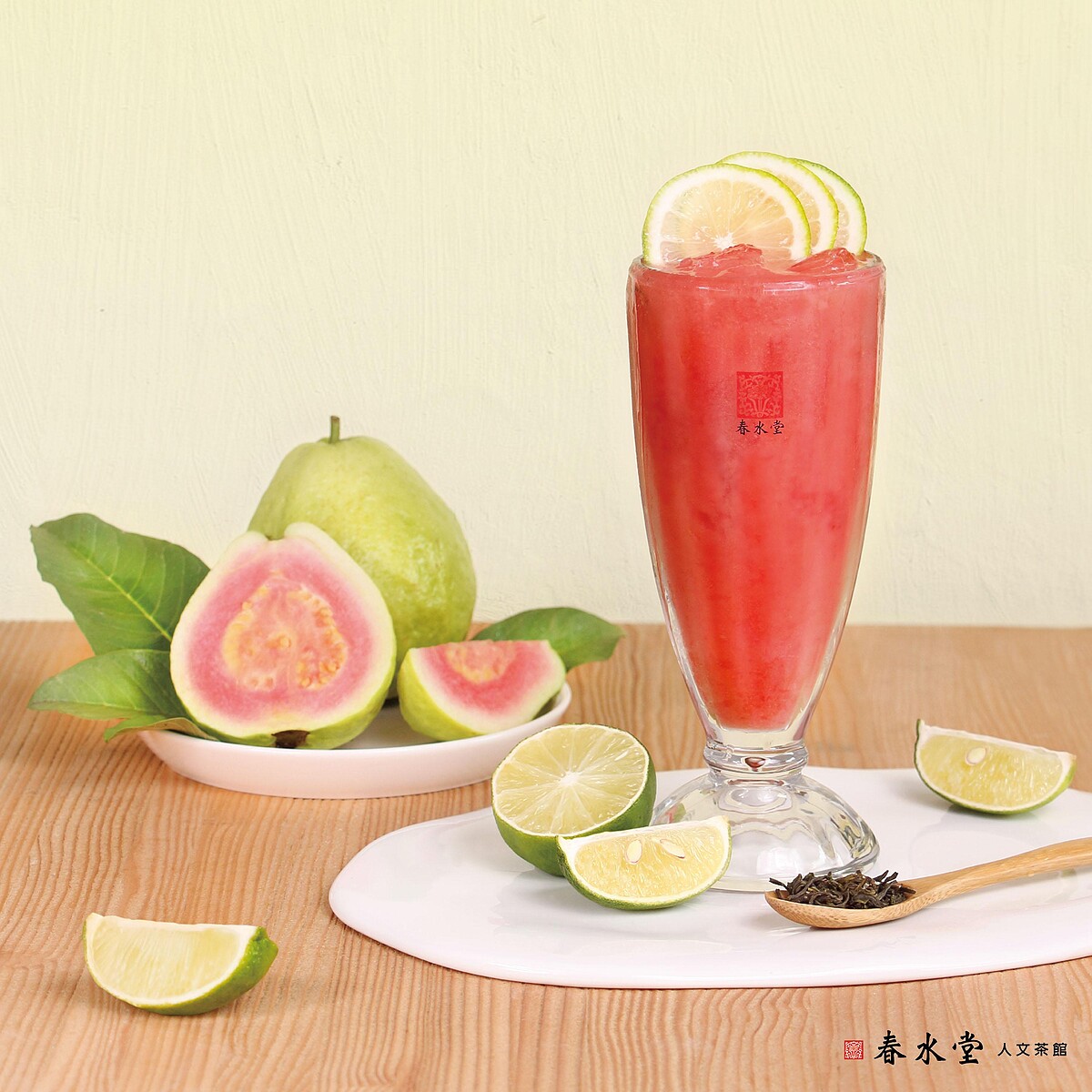 春水堂推出期間限定的超美味果茶紅心芭樂檸檬綠茶」,嚴選時令盛產的美顏極品紅心芭樂,與最專業的冷飲調製方式,充分展現完熟果實的濃郁香氣!
