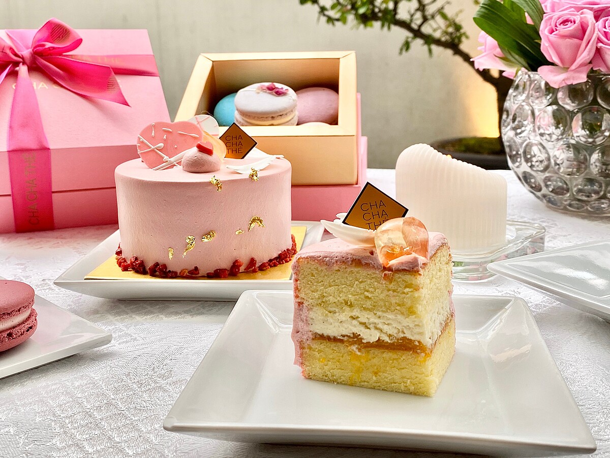香草戚風蛋糕抹上椰香卡士達調味的粉色鮮奶油,口感香滑而輕盈,甜點主廚特地挑選夏季盛產的愛文芒果,以及有熱情果之稱的百香果作為內餡夾層的主要食材,藉由兩者的濃郁果香與酸甜滋味,為七夕情人節傳遞濃情蜜意。