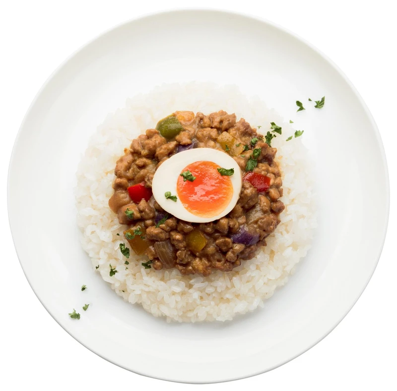 夏日開胃對策:咖哩中的辛香料可以刺激食慾並提升代謝,而夏天冷氣房容易感冒、畏冷,簡單透過咖哩料理就可解決!由爪哇咖哩與絞肉做成的「香料絞肉乾咖哩」,除了咖哩之外,搭配富含維生素A的青椒、黃椒、茄子及牛番茄,加上洋蔥內的槲皮素,都是增加免疫力不可或缺的營養素!尤其茄子除了富含鉀離子可以調節血壓,其紫色的外皮富含抗自由基的多酚類化合物,抗氧化、抗老化的秘密武器。