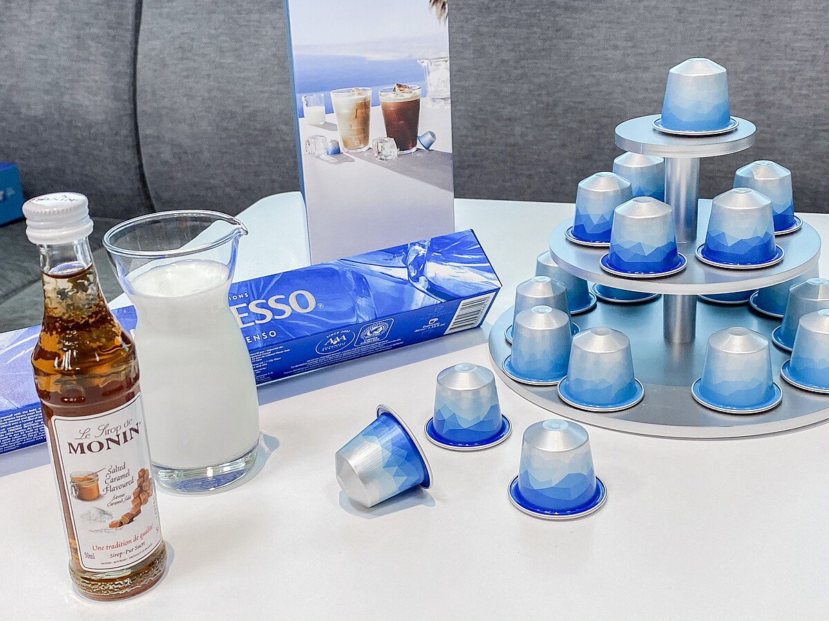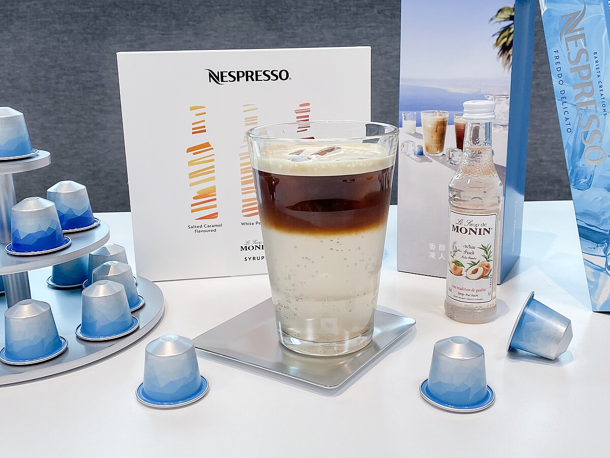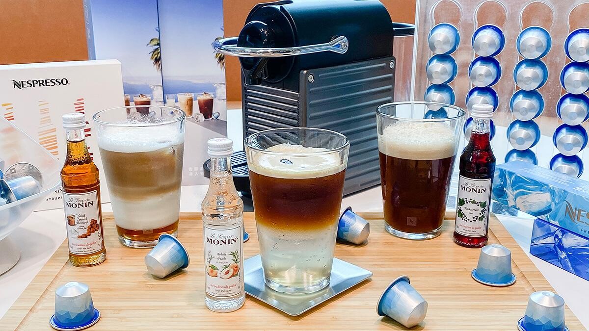 除了限量冰咖啡外,Nespresso與法國百年糖漿品牌Monin合作推出第二版精緻迷你版糖漿禮盒,內含三款人氣風味 : 白桃、海鹽焦糖、黑醋栗風味的迷你瓶糖漿,只要一鍵萃取咖啡,無論搭配冰塊、鮮奶或氣泡水,都能添加些許糖漿點綴,就能輕鬆完成視覺、味覺兼具的消暑紓壓飲品!