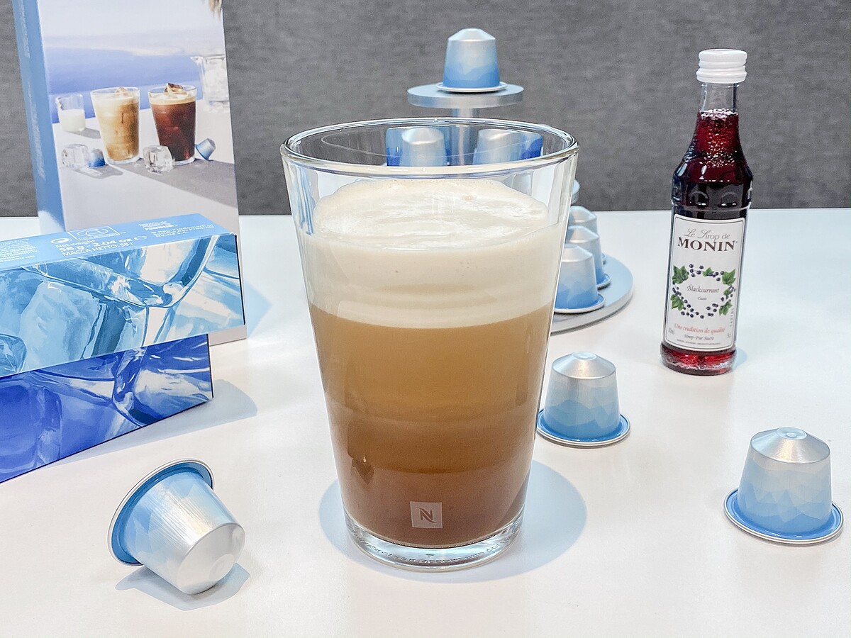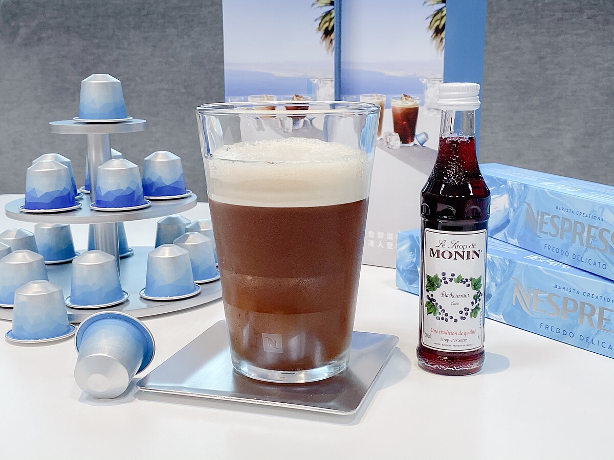 以清爽冰咖啡膠囊、黑醋栗風味糖漿及冰水打造出的沁涼咖啡特調!不用出門,在家也能做出宛如氮氣咖啡的綿密泡沫與沁涼感,這款也非常適合喜愛輕爽風味的人享用!