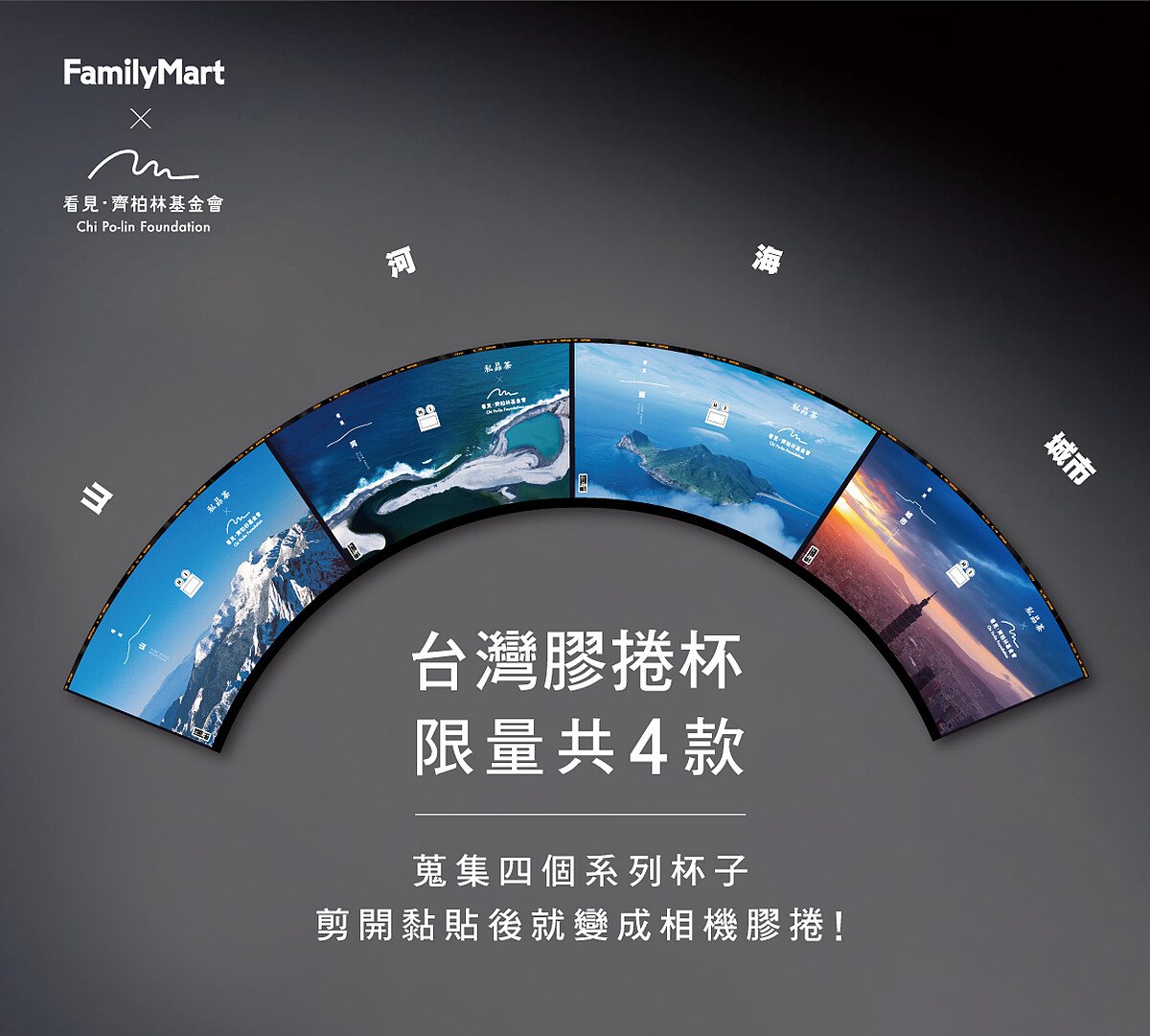 今年全家便利商店因應8月19日的世界攝影日,特別攜手「看見‧齊柏林基金會」推出一項極富意義的活動—《喝護台灣》,整體的設計理念則是擷取齊柏林空間首檔特展「見山 VIEW ABOVE MOUNTAINS」的四大主軸:山、河、海、城市的概念延伸而來,推出齊柏林導演空拍影像的聯名杯款與攝影珍藏套卡,邀請大家一起珍藏台灣之美!