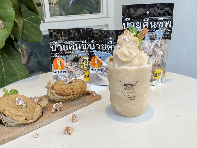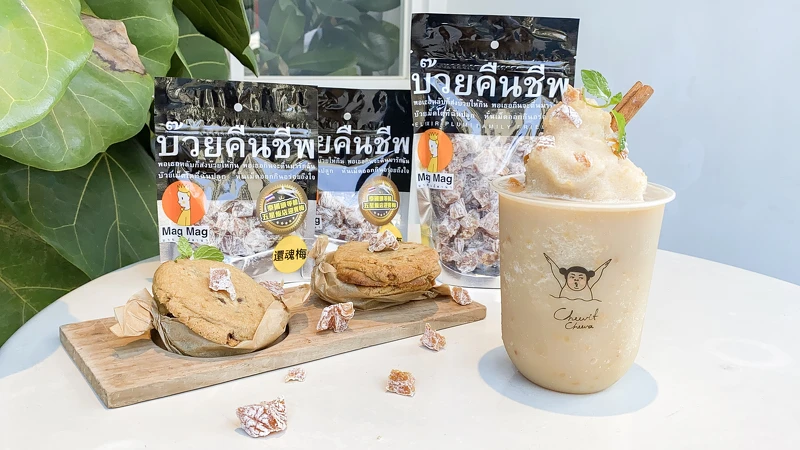 除了超濃郁的榴槤美食外,奇維奇娃與泰國超人氣的Mag Mag還魂梅首度合作推出超消暑的還魂梅冰沙、巧克秒還魂餅乾!