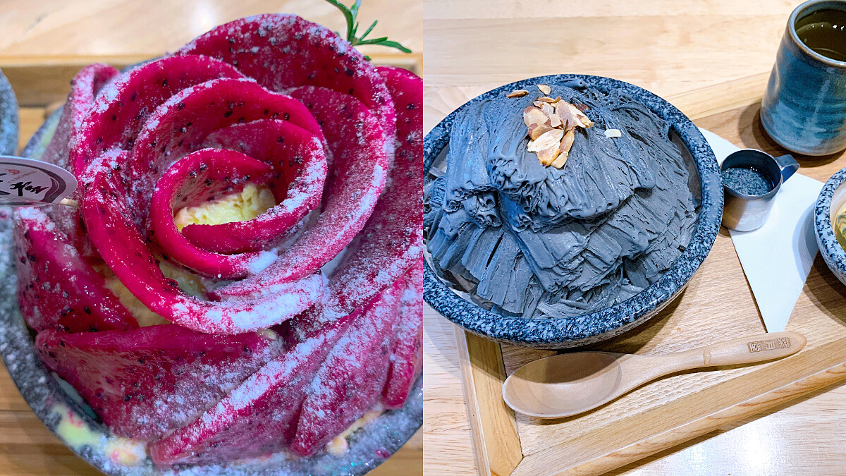 月葉堂以天然雪花冰為賣點,每一塊的冰磚都是用天然食材,不使用人工香料或色素,也不添加安定劑和乳化劑。他們的「芒果火花」,用小農無毒咖啡渣餵養的紅龍果,切成美麗的玫瑰花瓣,襯在當季新鮮芒果雪花冰上,再佐以黑糖珍珠香氣,視覺味覺嗅覺一次滿足。每道冰品還會依據季節附上珍珠或白玉,以及養身牛蒡茶,讓吃冰也能有儀式感的特殊體驗。