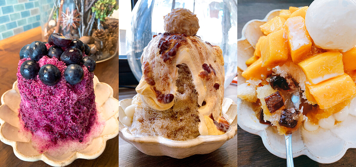 必吃美食:#新鮮葡萄刨冰 #Mimi香草芒果 #黑秘蕨餅 #香芋泥刨冰