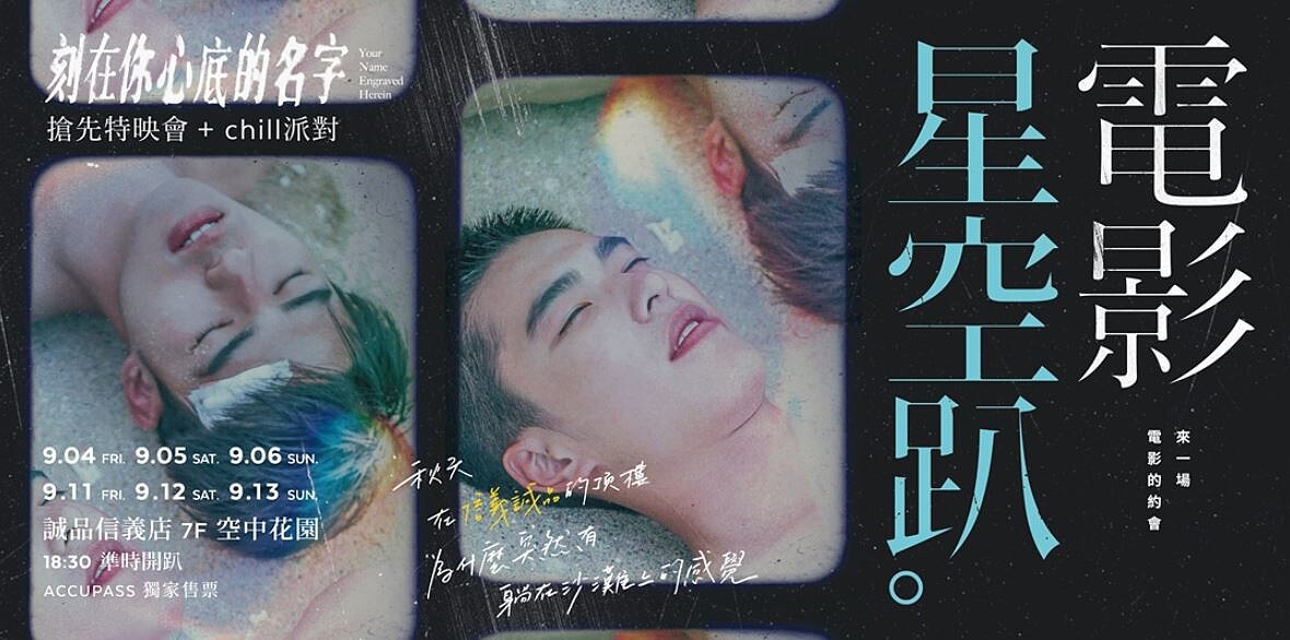 肚子餓的人,可以在永和清新小店「一碗·小涼麵」中,品嚐佐美乃滋或滷肉汁的特殊口味,用美食療癒一整天疲憊的身心靈。另外誠品信義店的7樓空中花園,也將在9/4-9/6、9/11-9/13舉辦「電影星空趴」,會首映瞿友寧導演監製的電影《刻在你心底的名字》,現場也準備啤酒與小點,留下難忘的微醺夏夜回憶。