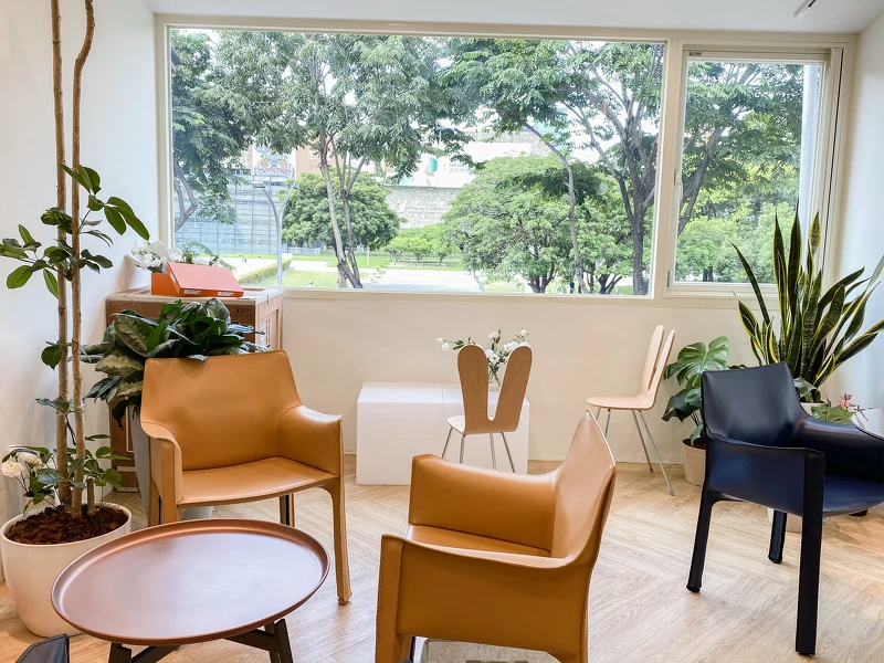連座椅都大有來頭皆是設計師款,其中一款小巧可愛的「SANAA兔子椅」由日本著名的建築師妹島與世和西澤立衛所設計,微妙的高度更貼近東方女性身型。