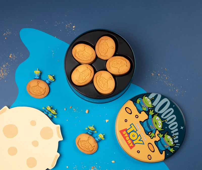 BAC與《玩具總動員》攜手推三眼怪造型手工曲奇,復古外盒上重現三眼怪與披薩星球的經典畫面,酥脆曲奇與超萌三眼怪怎麼捨得入口!