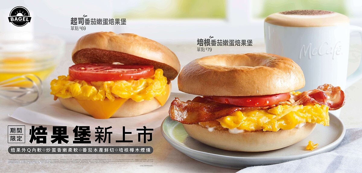 低脂、低油、有口感的Bagel焙果,不僅是歐美日人氣居高不下的美食寵兒,近年來更風靡全台灣,帶點Q勁的耐嚼美味深深吸引許多麵包粉絲的心!尤其是夾了蛋或肉等「鹹餡料」的焙果,不僅吃得飽,更給人高級輕食般的精緻質感。不過這類鹹焙果堡若非自己花時間做,通常得去要價不便宜的美式餐廳才能吃到…因此麥當勞從9月2日起全新推出的早餐期間限定焙果堡,真是美食控的一大福音啊!原味焙果搭配調味剛剛好的鮮嫩炒蛋等餡料,讓女孩們不用花時間(花大錢)尋尋覓覓,輕鬆以麥當勞焙果堡為今天帶來美好幸福的儀式感!