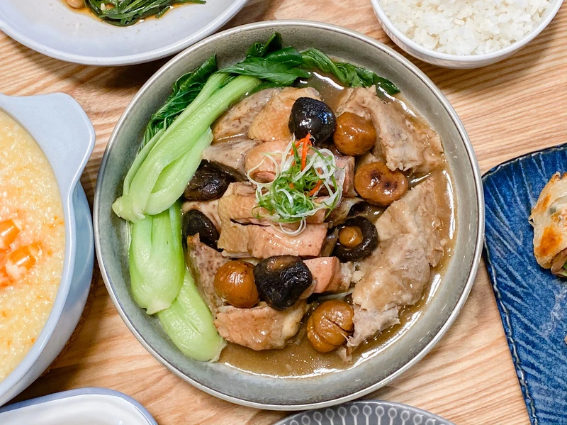 以秘方醬汁與中藥材浸泡新鮮栗子,經過24小時醃製後,再與整支雞大腿和大甲直送的芋頭一起燉煮,入口即化的口感非常下飯,一不小心就吃完整碗飯了!