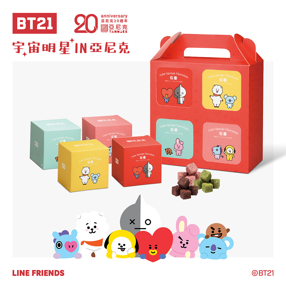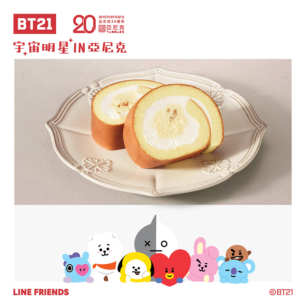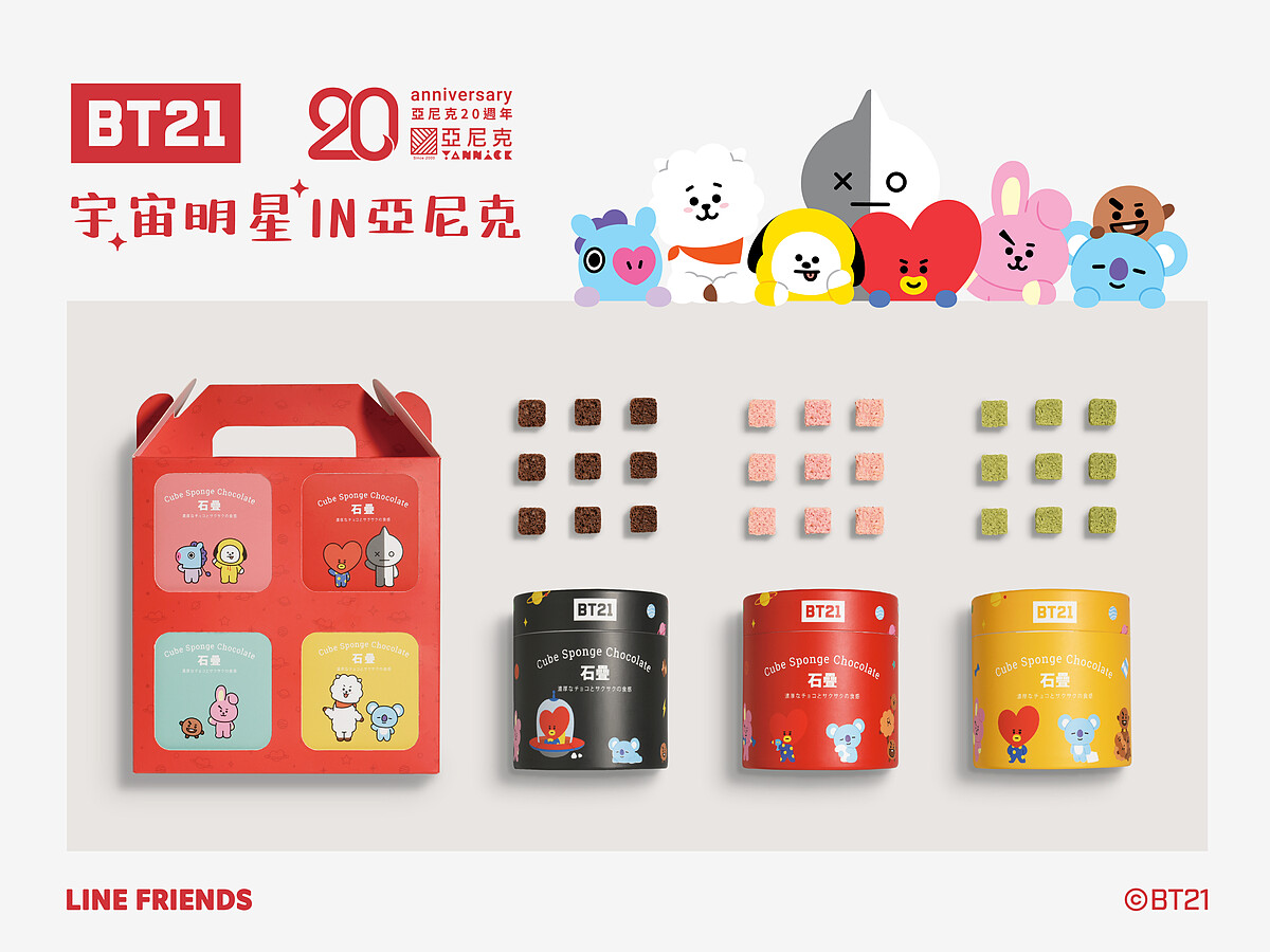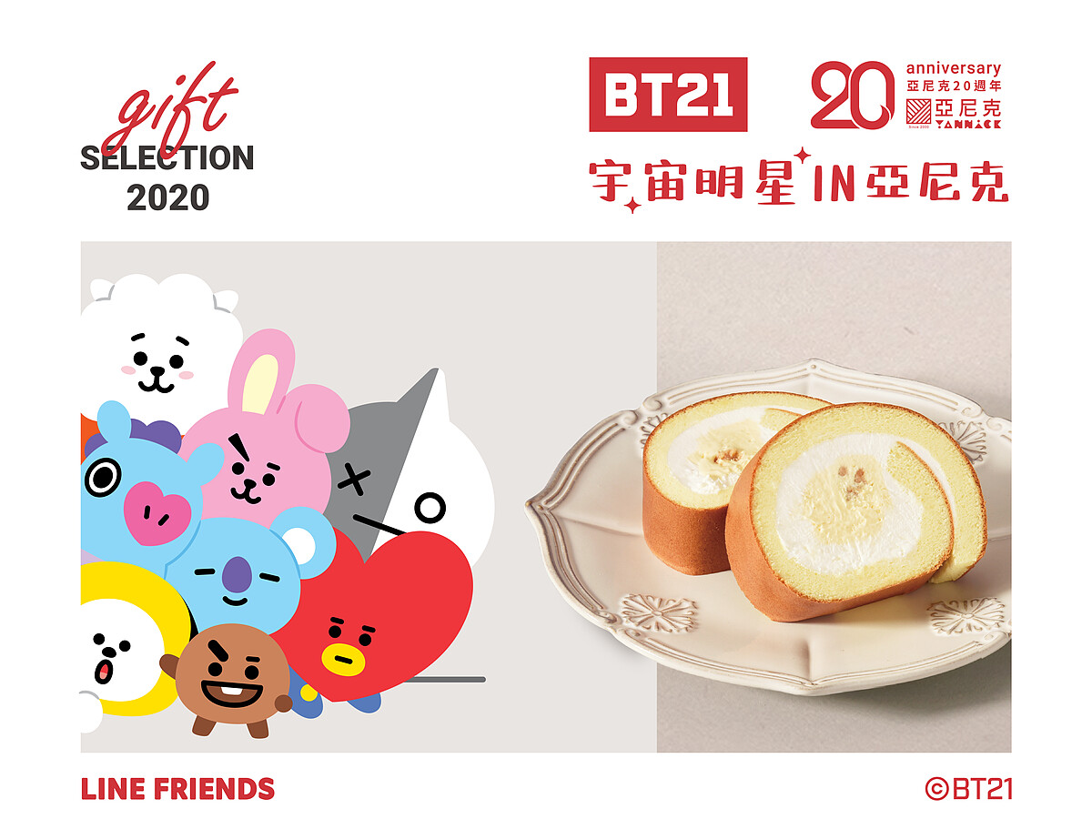 亞尼克與BT21再度攜手合作啦!有別以往的甜口味生乳捲,這次推出全新的奶黃金沙生乳捲,鹹香滋味讓人欲罷不能!還有超熱賣的石疊巧克力也換上超萌包裝與新口味,等著大家開吃啦!