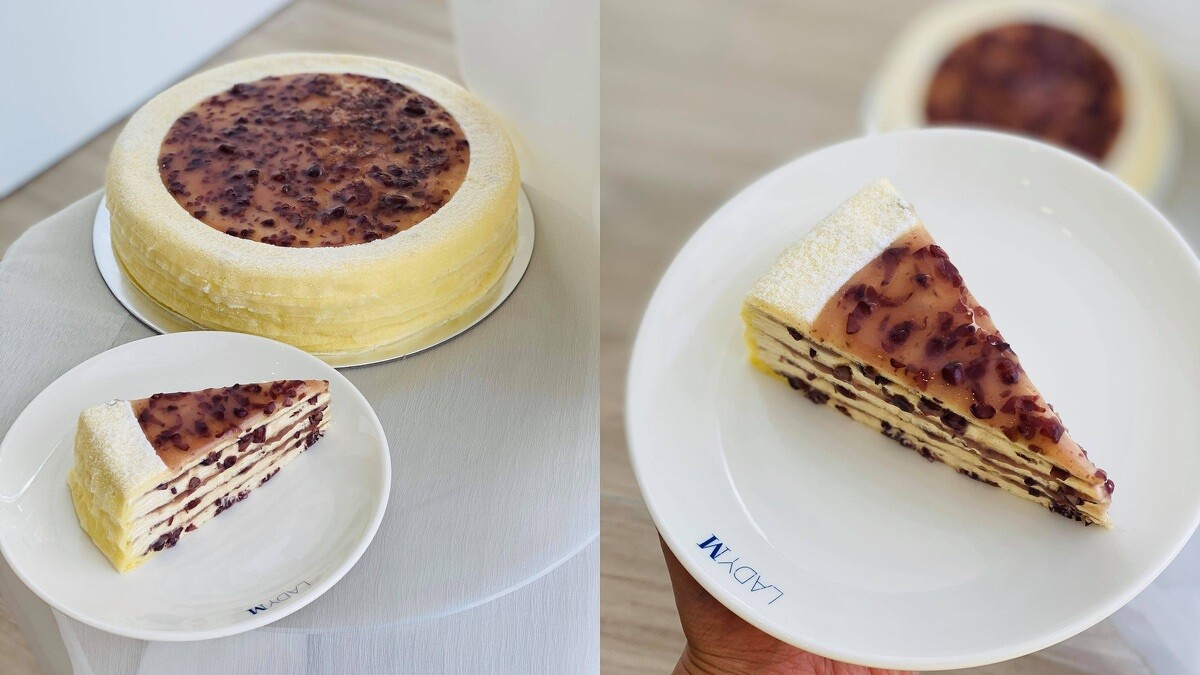 而「紅豆千層蛋糕」則選用吸收南臺灣陽光 、顆粒扎實飽滿的高雄9號紅豆,入口可以吃到紅豆顆粒,配上鮮奶油增添整體口感層次,紅豆控怎能說不呢?