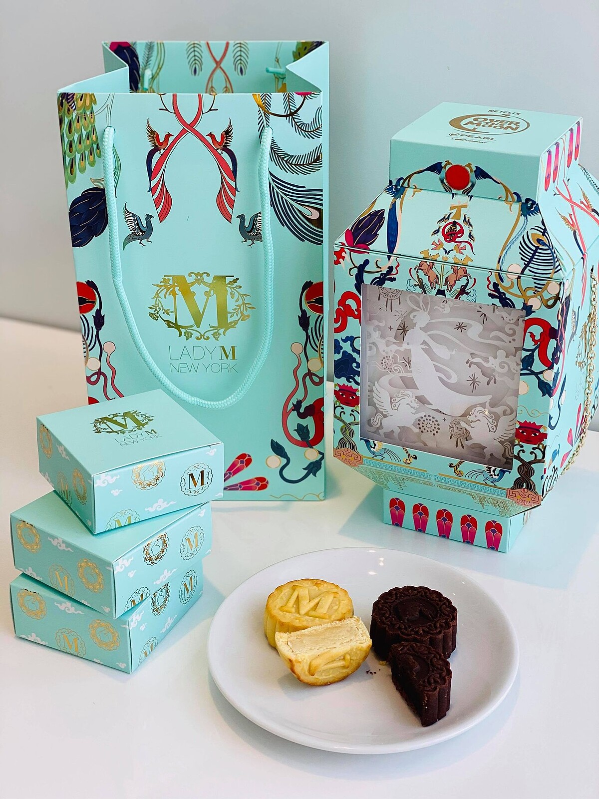 此外,Lady M也在今年中秋節推出「奔月禮盒」,外觀取材自動畫大師Glen Keane執導的動畫音樂劇 《飛奔到月球Over The Moon》,將華麗的動畫場景設計為中式優雅手提燈籠,點亮盒中暗藏巧思,可以看到嫦娥奔月的神話剪影,湖水綠的絕美盒裝當作送禮相當適合。