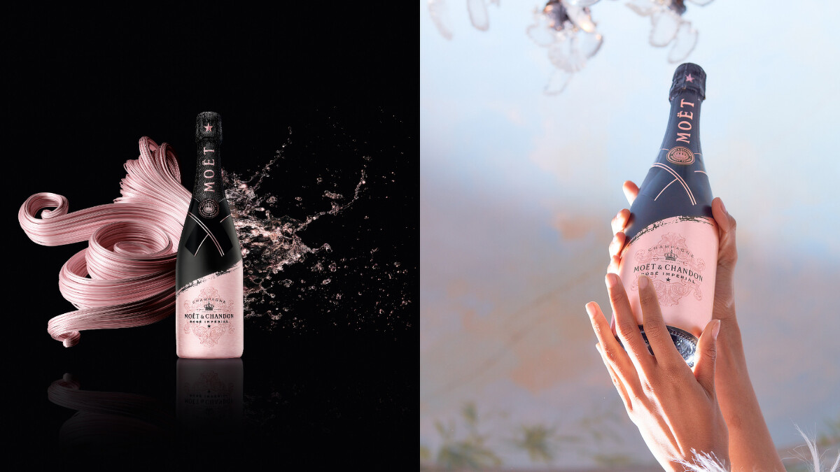 在「酩悅香檳粉紅 Pop Up BAR」獨賣的「酩悅粉紅香檳2020年經典限量瓶」,是以全新黑色霧面瓶身設計,經典頸帶上除佐以粉紅金線條外,更在瓶頭以粉紅色星代表粉紅香檳的象徵,晶瑩剔透的粉紅色酒體,宛如女孩們的專屬美酒。