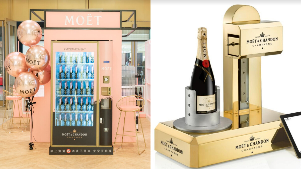 快閃店現場同時銷售提供客製印字服務的酩悅粉紅香檳 (750ml) ,還有全台唯一酩悅迷你粉紅香檳販賣機,只要於現場購買Moët金色代幣,投入酩悅迷你香檳販賣機內,即可獲得酩悅迷你粉紅香檳(200ml)1瓶。