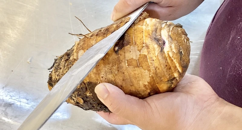 除此之外在製作過程中更是講究芋頭的「分切分用」,芋頭的每一段都有不同的口感,像是芋頭中段是多數人在甜點上使用的區塊,質地較為綿密,芋控們可以透過「芋泥派」來品嚐其單純濃郁內餡!