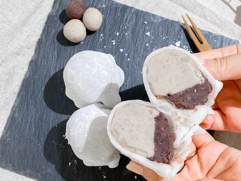 芋頭大福來了!以冰涼Q彈的麻糬外皮包裹著綿密爆棚的芋泥,一口咬下不只吃得到芋頭香,還有甜而不膩的紅豆泥,日系雪媚娘配上台灣土根系的傳統滋味,交織出絕佳風味!