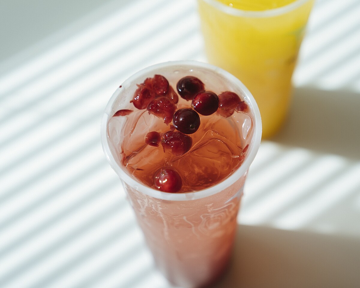 2款口味分別是「蔓莓花漾」以及「黃澄鮮柳」,其中「蔓莓花漾」有著莓果的酸甜與果香,並添加綠茶凍增加層次,尤其整杯帶有粉粉的色澤,可是最浪漫的手搖之選。